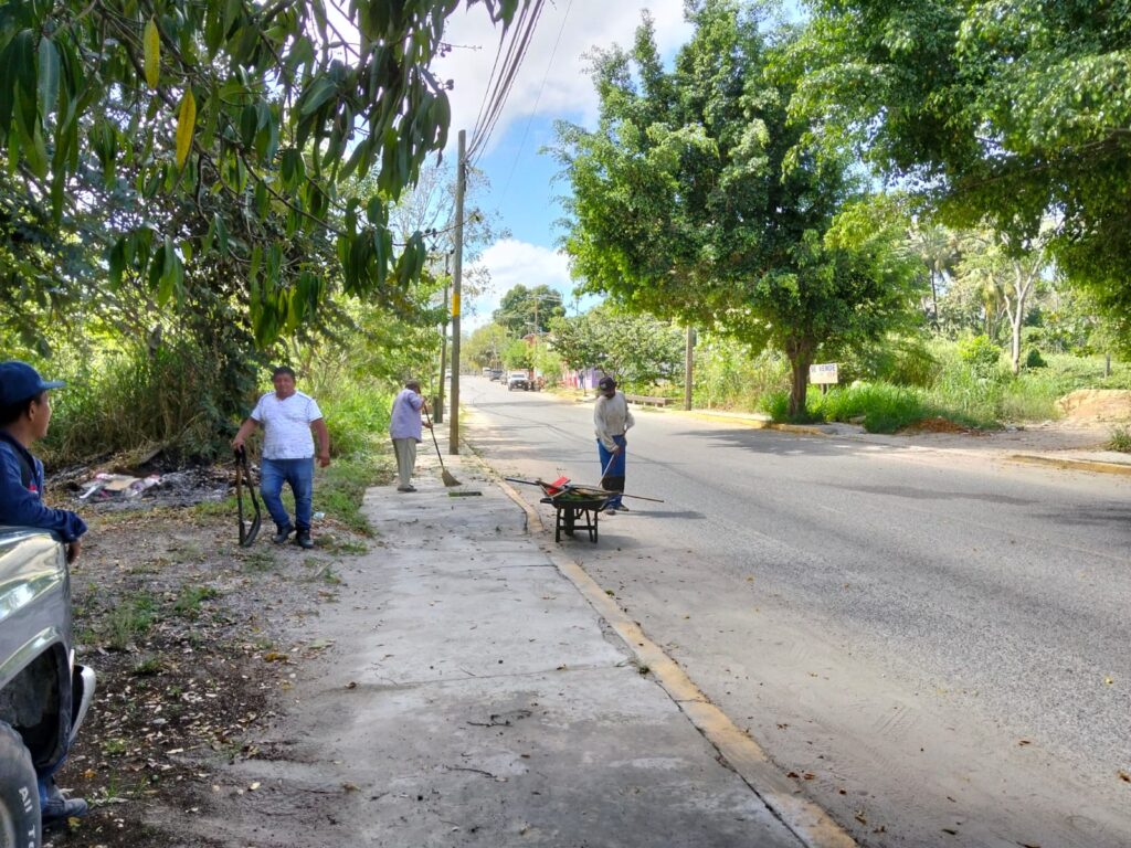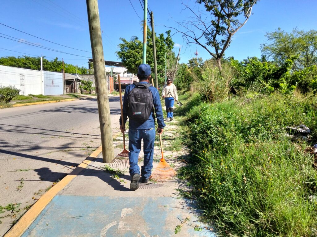 El Ayuntamiento de Tenosique a través de la Dirección de Obras, Ordenamiento Territorial y Servicios Municipales, realizó limpieza de guarniciones y banquetas en la prolongación de la calle 26, en el tramo comprendido entre la vía del Tren Maya y el antiguo ingenio azucarero, además de llevar a cabo mantenimiento al parque de la colonia Benito Juárez.