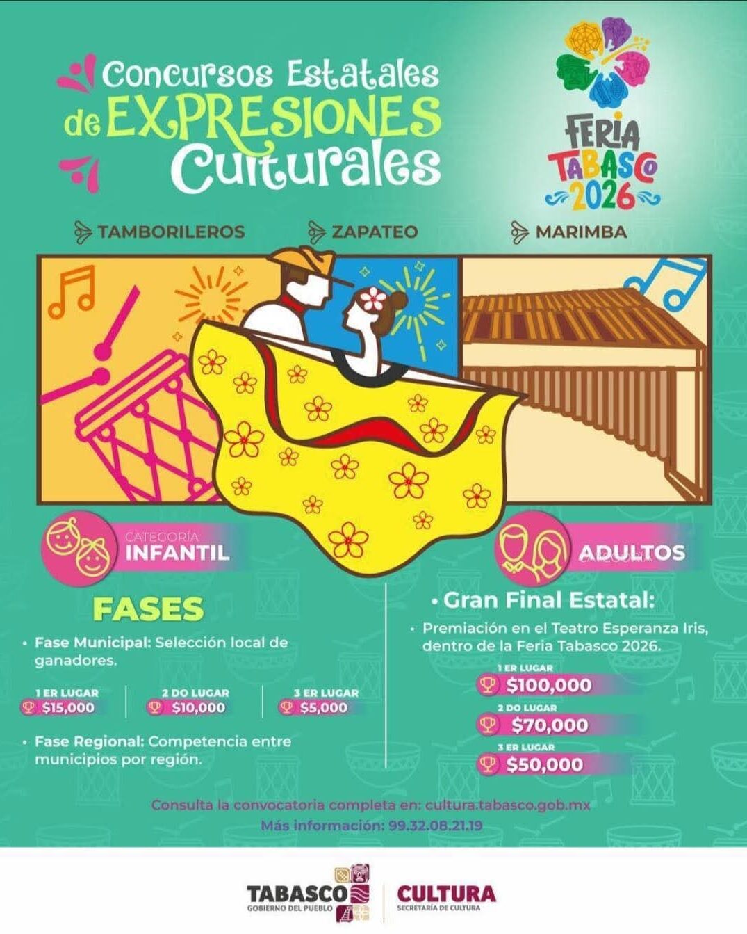 Revisa la convocatoria para participar en los Concursos Estatales de Expresiones Culturales, organizados por la Secretaría de Cultura de Tabasco, en el marco de la Feria Tabasco 2026.