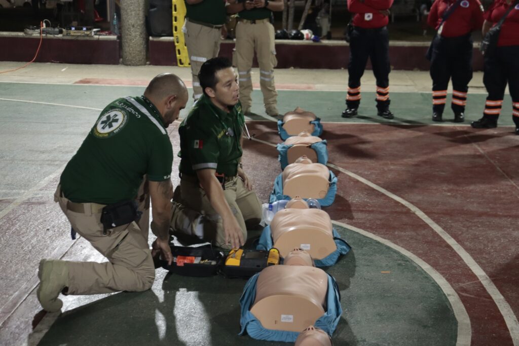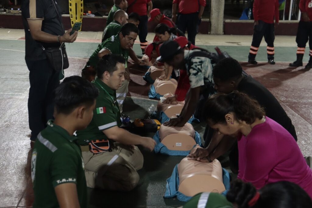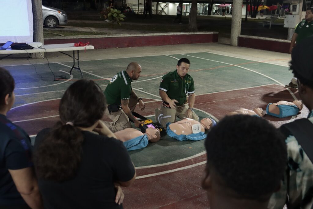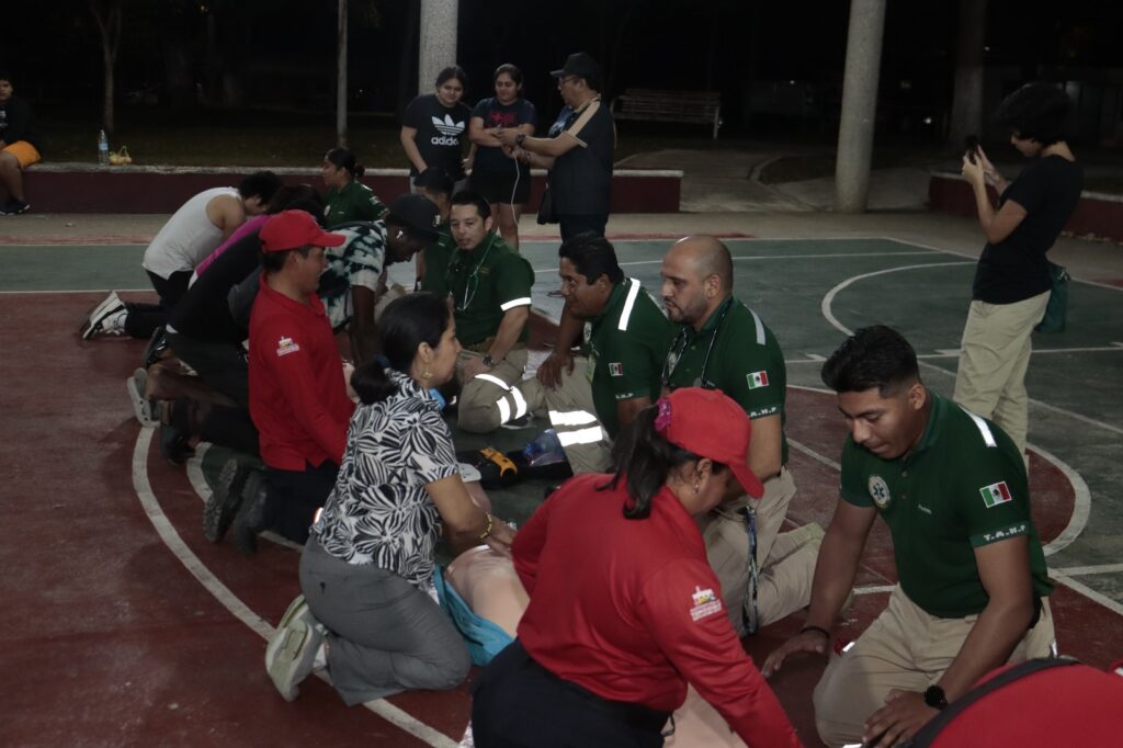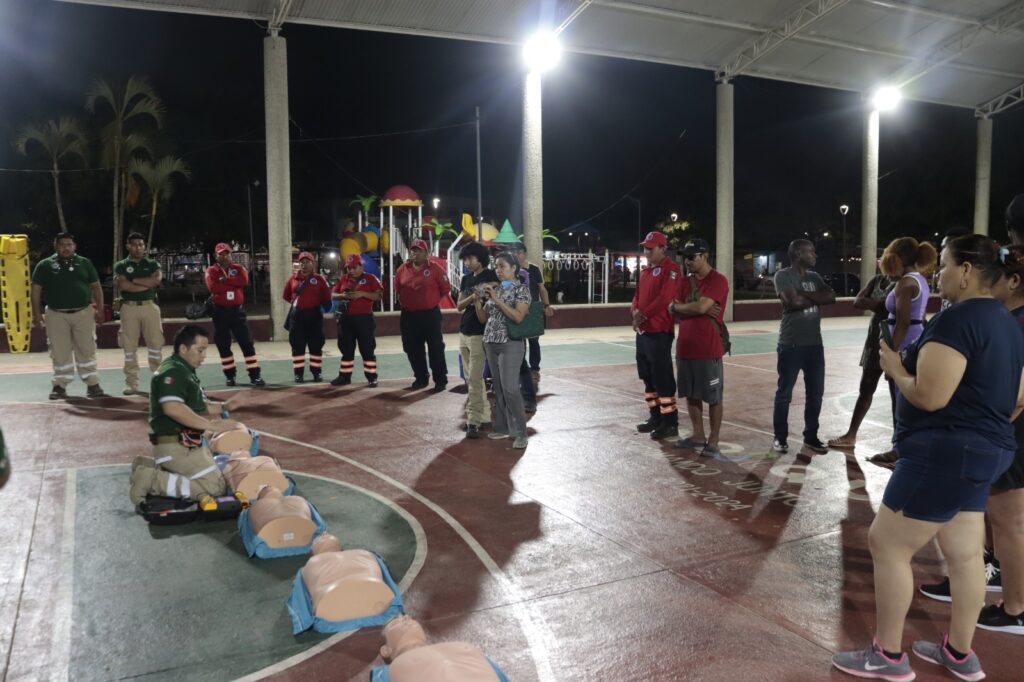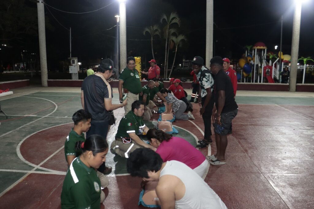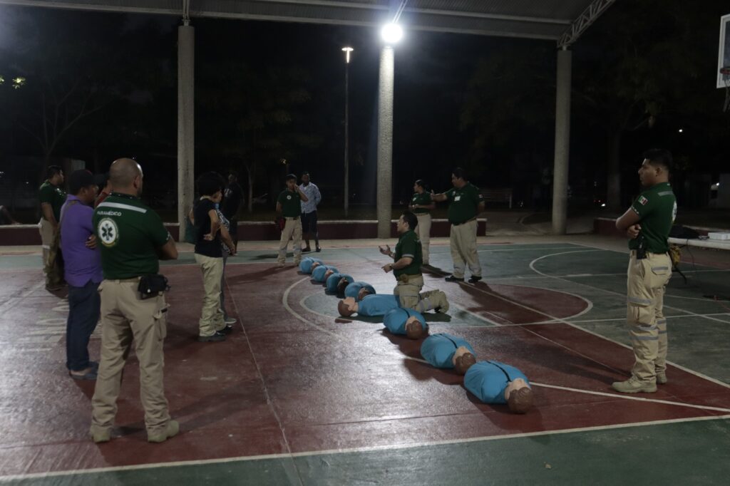 El Ayuntamiento de Tenosique, en colaboración con la Comisión Nacional de Emergencias y paramédicos del IMSS Bienestar, realizó la capacitación gratuita en Reanimación Cardiopulmonar (RCP) en el Parque de Convivencia Infantil.