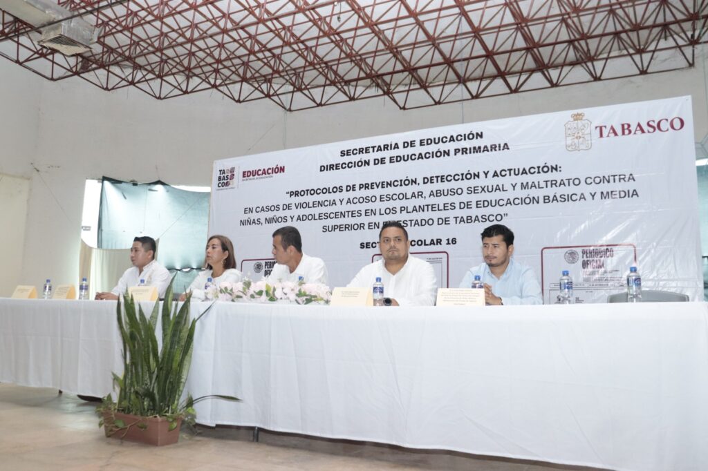 En este marco, se llevó a cabo la presentación del Protocolo de Prevención, Detección y Actuación en Casos de Violencia y Acoso Escolar, Abuso y Maltrato en educación básica y media superior del estado, iniciativa impulsada por la SETAB, quién en representación de su titular, Patricia Iparrea Sánchez, contó con la presencia de la directora de Educación Primaria, Lorena Isabel Torres López.