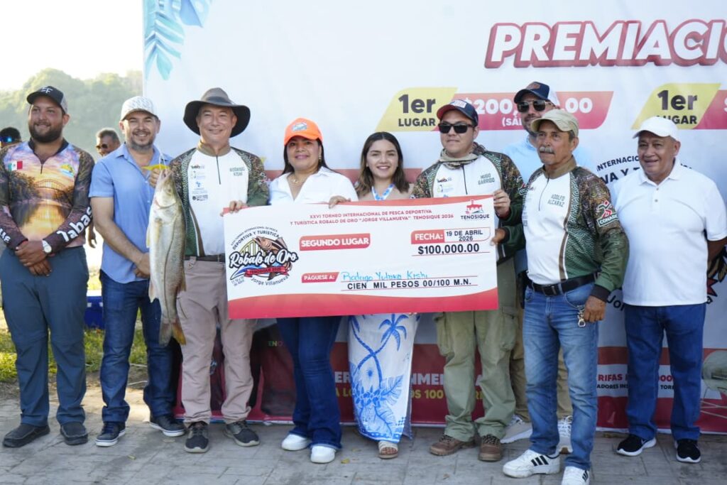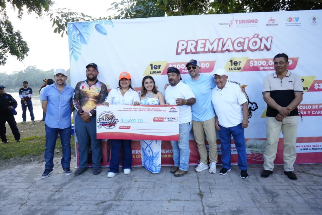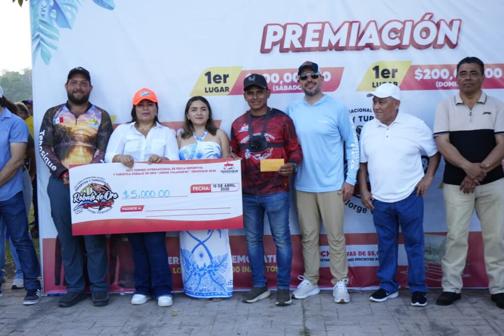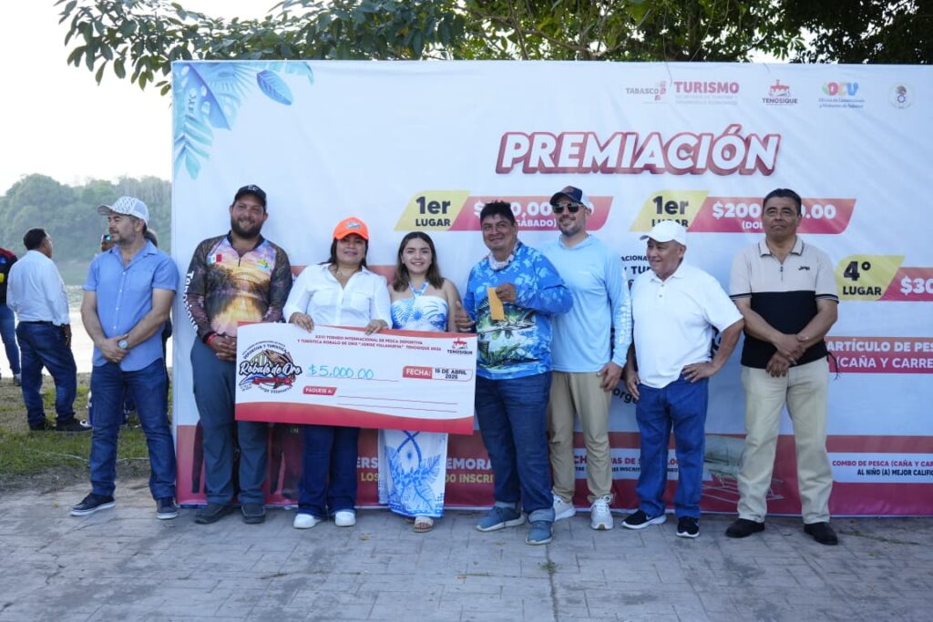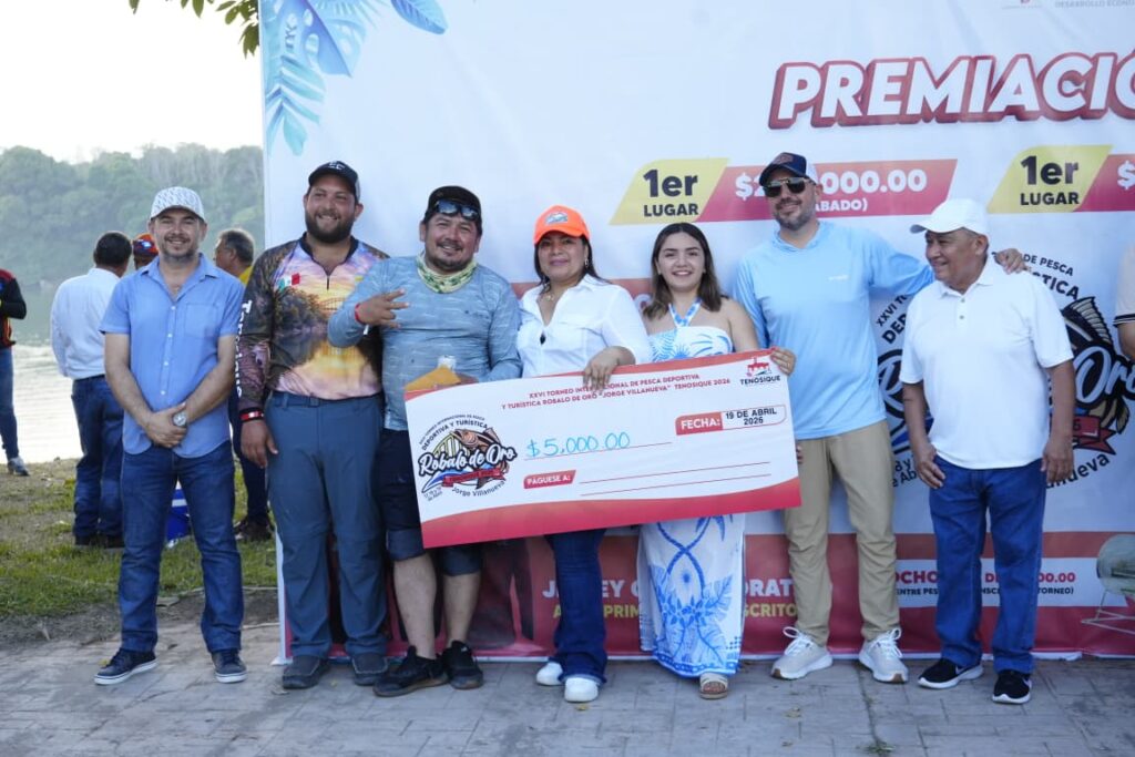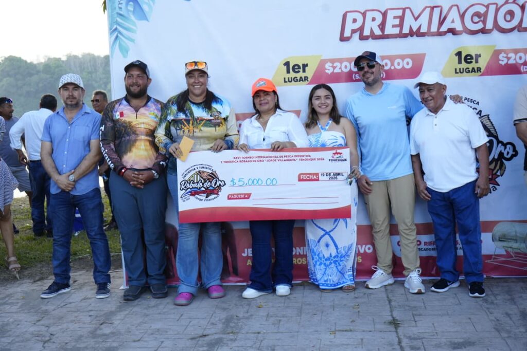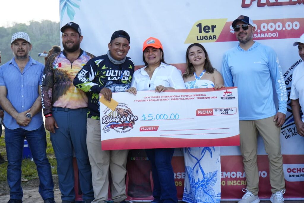 La presidenta de Tenosique, Sandra Beatriz Hernández Jiménez, encabezó la entrega de premios a los ganadores del XXVI Torneo Internacional de Pesca Deportiva y Turística Róbalo de Oro 2026 “Jorge Antonio Villanueva Celorio”, reconociendo su esfuerzo, pasión y compromiso con esta gran tradición.