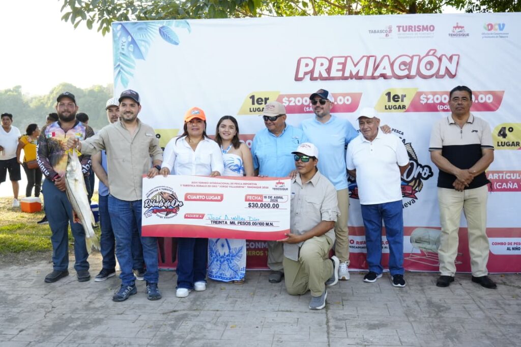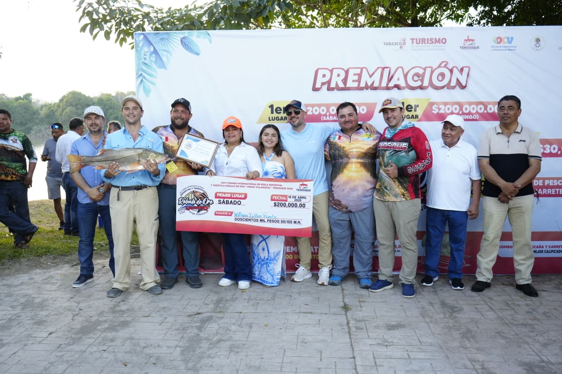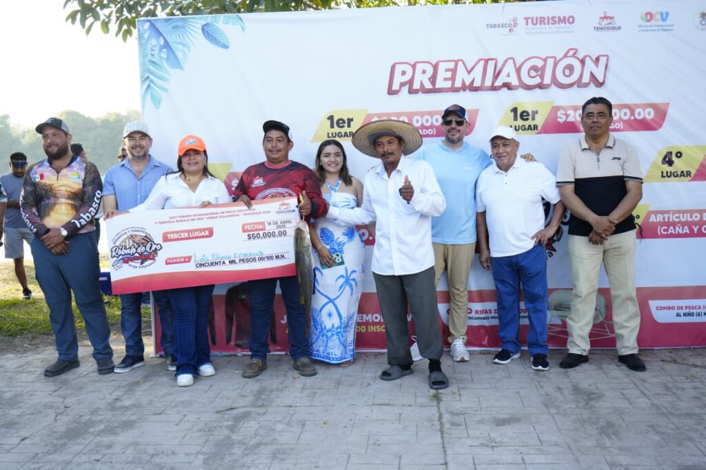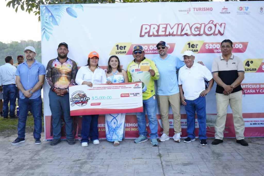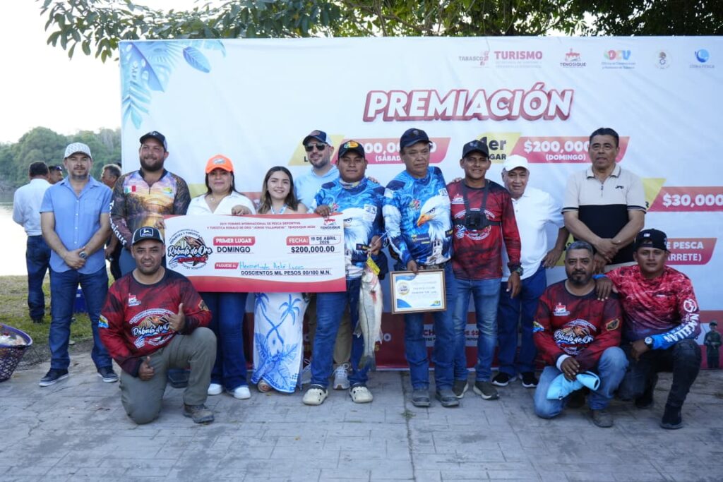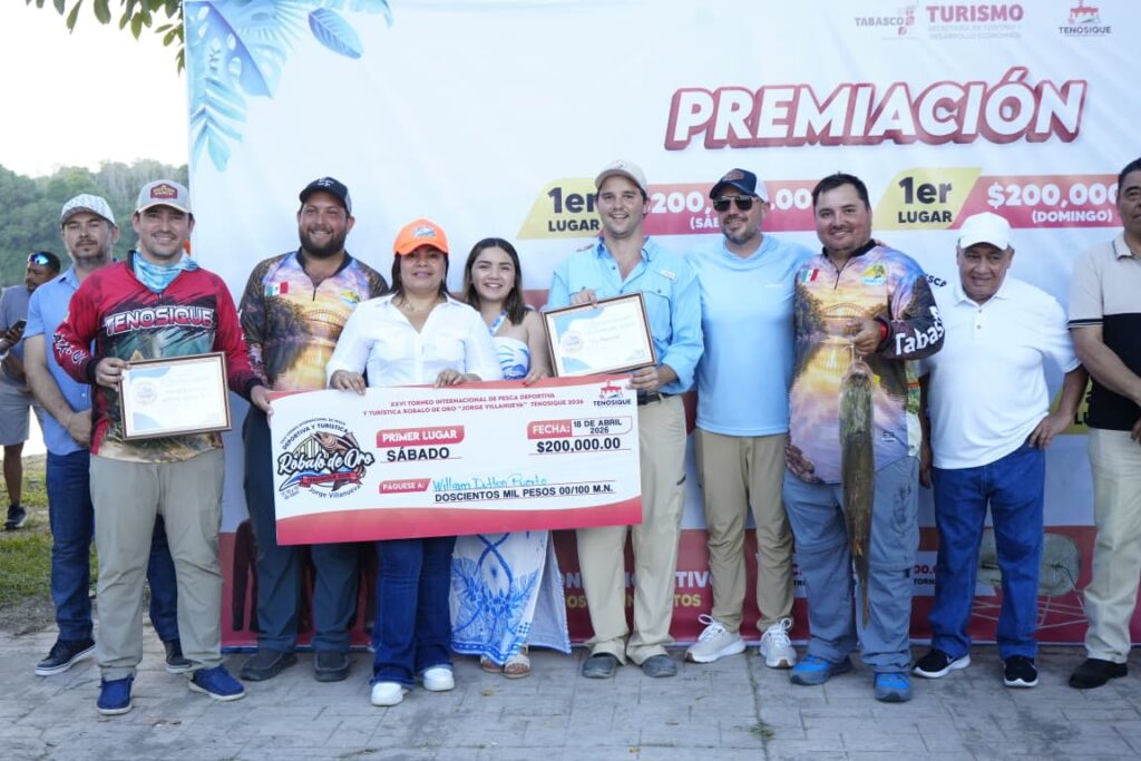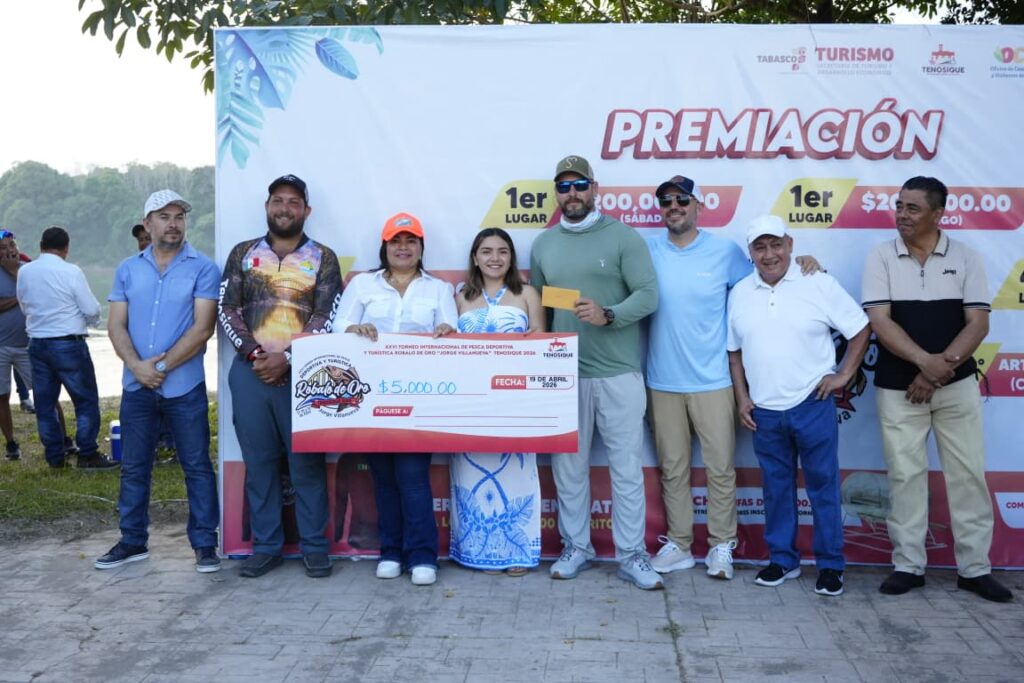 La presidenta de Tenosique, Sandra Beatriz Hernández Jiménez, encabezó la entrega de premios a los ganadores del XXVI Torneo Internacional de Pesca Deportiva y Turística Róbalo de Oro 2026 “Jorge Antonio Villanueva Celorio”, reconociendo su esfuerzo, pasión y compromiso con esta gran tradición.
