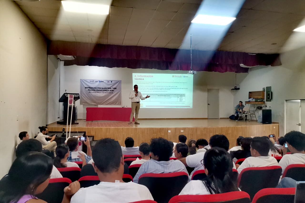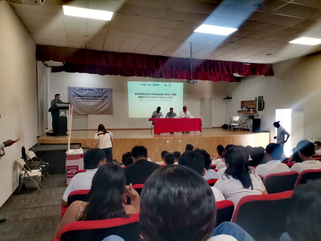 Durante el encuentro, realizado en el Auditorio de la Casa de la Cultura, se explicaron beneficios como la reducción del IVA del 16 % al 8 % y estímulos en ISR para empresas con operaciones en Tenosique y Balancán, con el objetivo de fortalecer la actividad económica en la región.