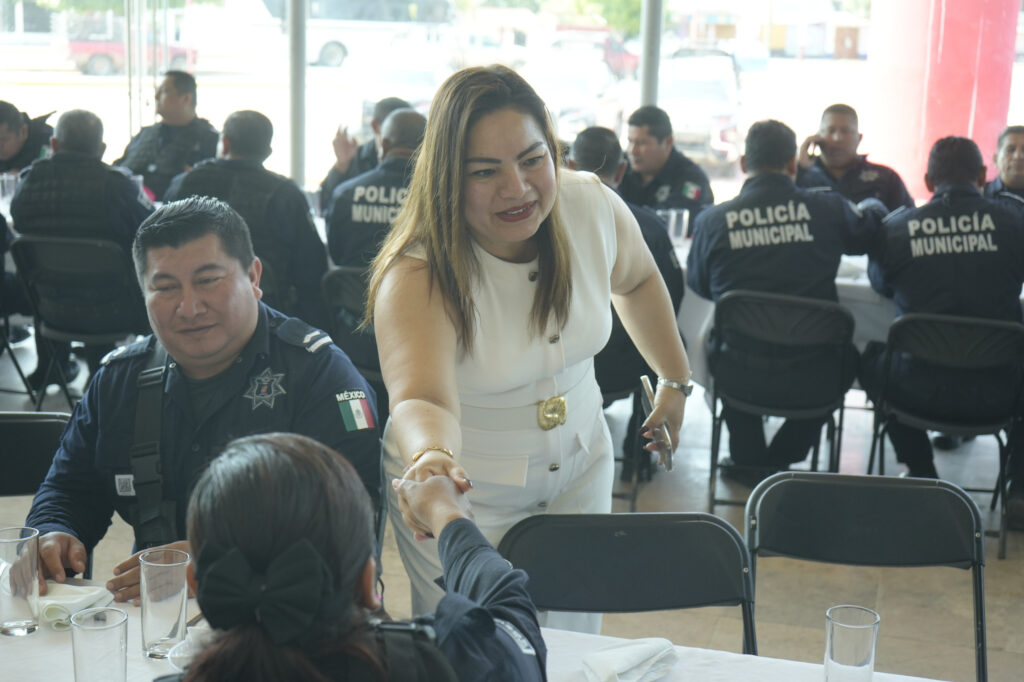 Acompañada del director de Seguridad Pública Municipal, Enoc Roberto Cruz Uco, la alcaldesa anunció que, gracias a las gestiones realizadas a través del Fortamun, se verá reflejado una homologación salarial a los policías municipales, como reconocimiento a su esfuerzo y dedicación en favor de la seguridad de las familias de Tenosique.