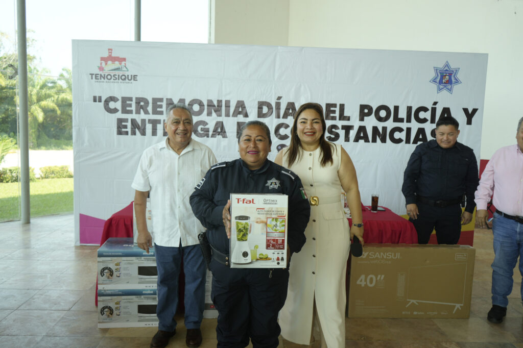 La presidenta municipal, Sandra Beatriz Hernández Jiménez, encabezó la Ceremonia del Día del Policía de Tenosique, en la que se realizó la entrega de constancias de cursos de actualización y capacitación policial, reconociendo la valentía, disciplina y compromiso de las y los elementos de la corporación.