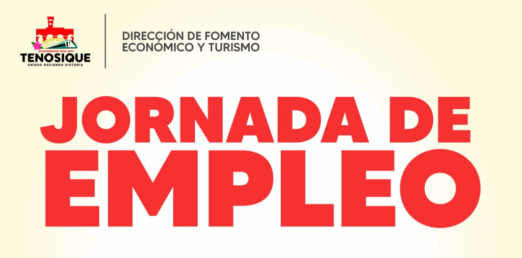 El Ayuntamiento de Tenosique a través de la Dirección de Fomento Económico y Turismo, invita a la Jornada de Empleo este miércoles 19 de noviembre, de 9:00 a 13:00 horas, en la Coordinación de Empleo.