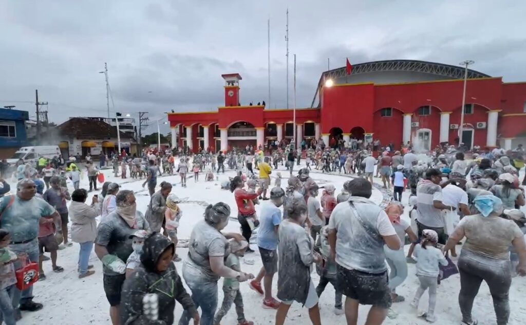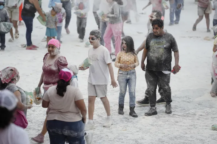 En esta expresión festiva participan niñas, niños, jóvenes y adultos, quienes comparten la alegría de quedar cubiertos de blanco como signo de renovación.